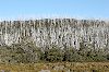 Outlying spires on Cradle Mountain. White trees in the foreground